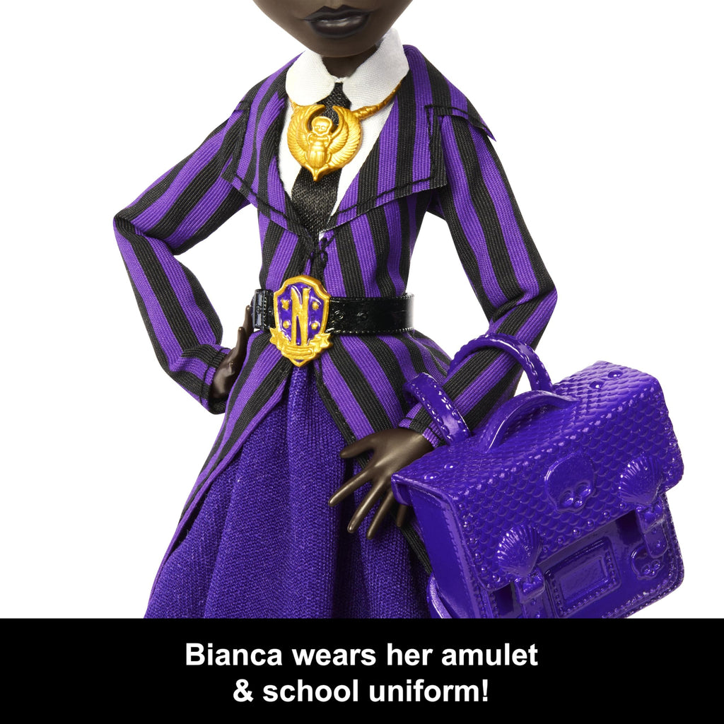 Monster High x Wednesday Doll and Accessories, Bianca Barclay Collectible in Nevermore Academy Uniform with Siren Amulet, Backpack and Doll Stand