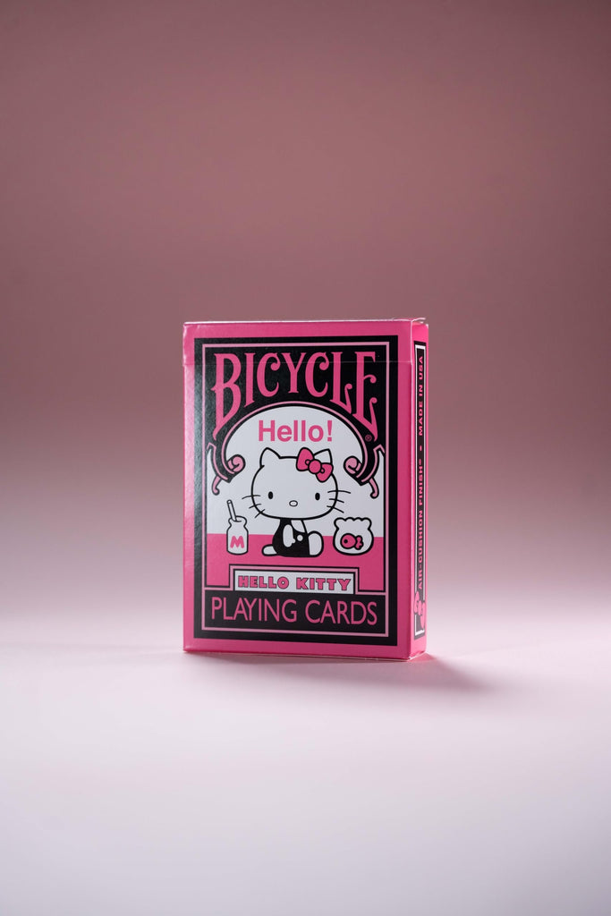 Bicycle Hello Kitty Playing Cards, Black & Pink, 1 DeckCUTENESS OVERLOAD – Hello Kitty plays dress‐up on the traditional style court cards featuring Hello Kitty faces in a kawaii black and pink design!ADORABLE CHARM - Discover delightful surprises on number cards with tiny mice, teddies, love letters and moreAIR CUSHION FINISH – Superior performance in your hands and on the table using our proprietary finish that provides unmatched playabilityMADE IN THE USA – Proudly produced in Erlanger, Kentucky by The United States Playing Card Company