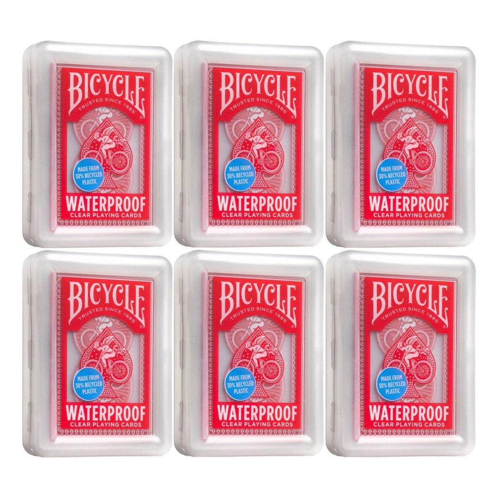 Bicycle Waterproof Clear Playing Cards - 6-Pack of Red Rider Back Plastic Decks, 30% Recycled Material, Rinseable, Perfect for Pool, Beach, Camping & Party Games