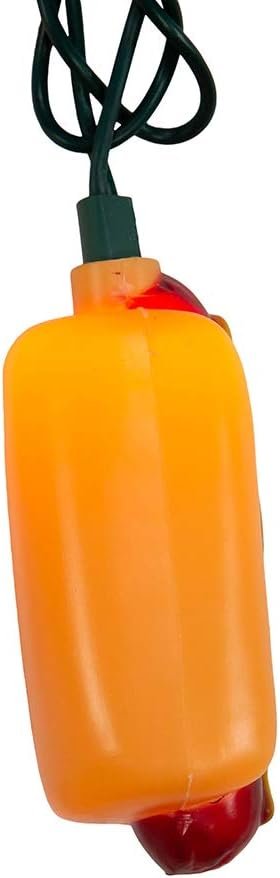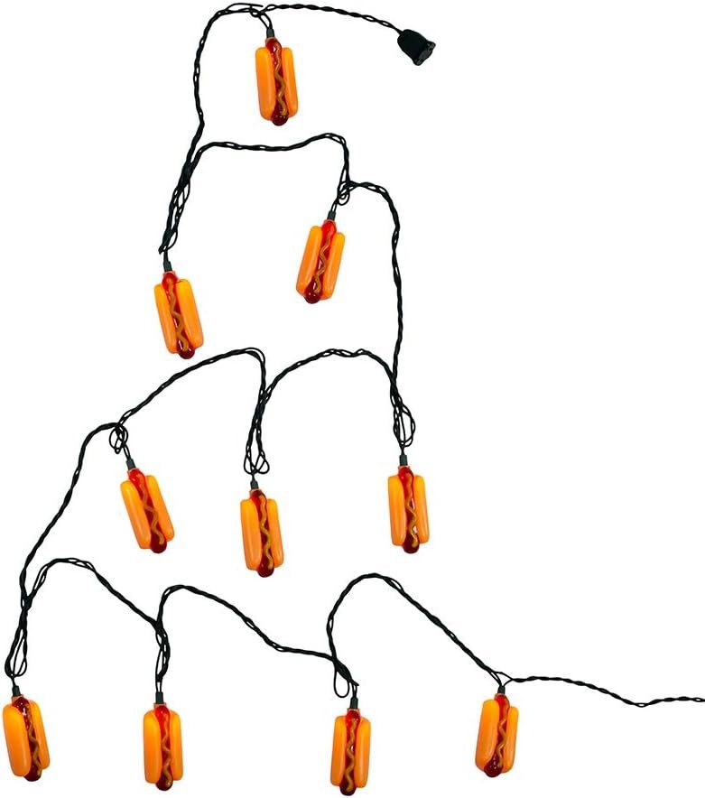 This UL 10-Light Hot Dog Light Set from Kurt Adler is a fun and festive addition to any holiday décor! This light set features 10 novelty hot dogs spaced 12-inches apart. The lead wire measures 30-inches. For indoor and outdoor use.