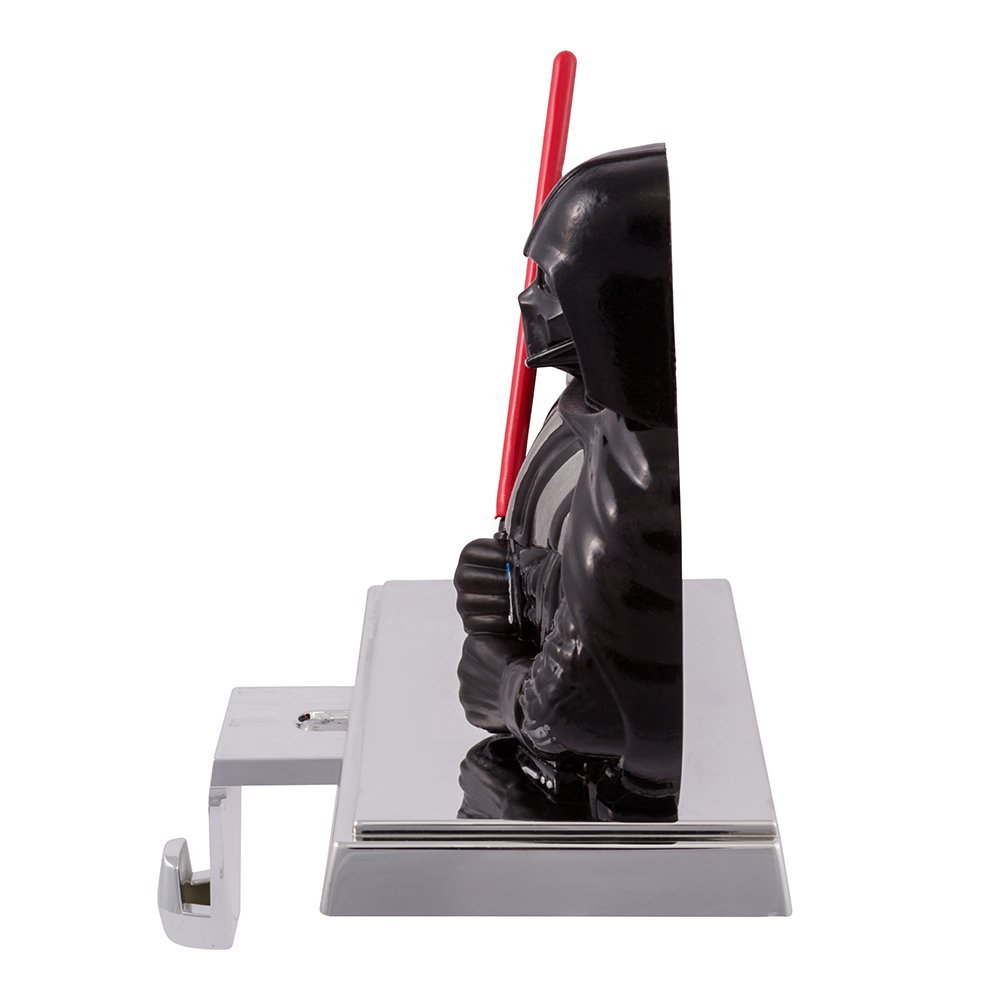 Hang your stocking on the Dark Side with this 4-Inch Darth Vader Stocking Holder from Kurt Adler. Darth Vader is featured here holding his red light saber with the Death Star looming behind him. Perfect for Star Wars fans and collectors!