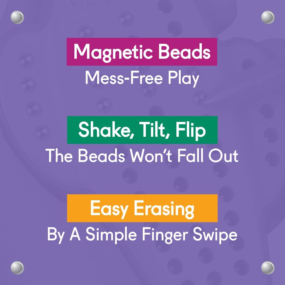 FIDGET FUN: Draw using beads inside the trendy shapes, then push the beads back down with a finger or the stylus.SO SATISFYING: The included stylus pulls the magnetic beads up to the surface with a satisfying “Click!”TRAVEL SIZED: Magnatab Minis are small and have a simple clip design to make it easy to enjoy your Magnatab everywhere you go! Perfect for children, teens, and adults ages 3+SENSORY-BASED: Feel the pull of the magnets, hear the clicking sound, and draw anything for excellent creative, sensory fun!EASY CLEANUP: The beads are magically “erased” when pushed down by the tip of a finger or the swipe of the side of the stylus.