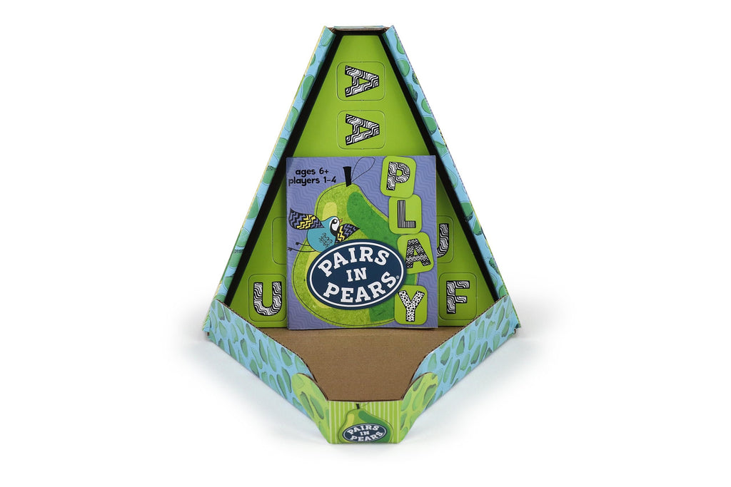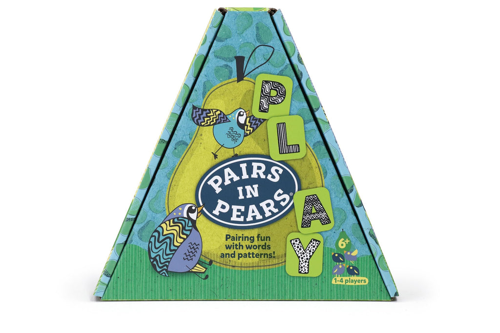 Pairs in Pears is ripe with sweet surprises and family fun! Race to make 2 connecting words using the same patterned tiles. Have a short word? Don't desPear! Longer isn't always better. The key is to match the patterns. Add up your points and pre-Pear for victory!