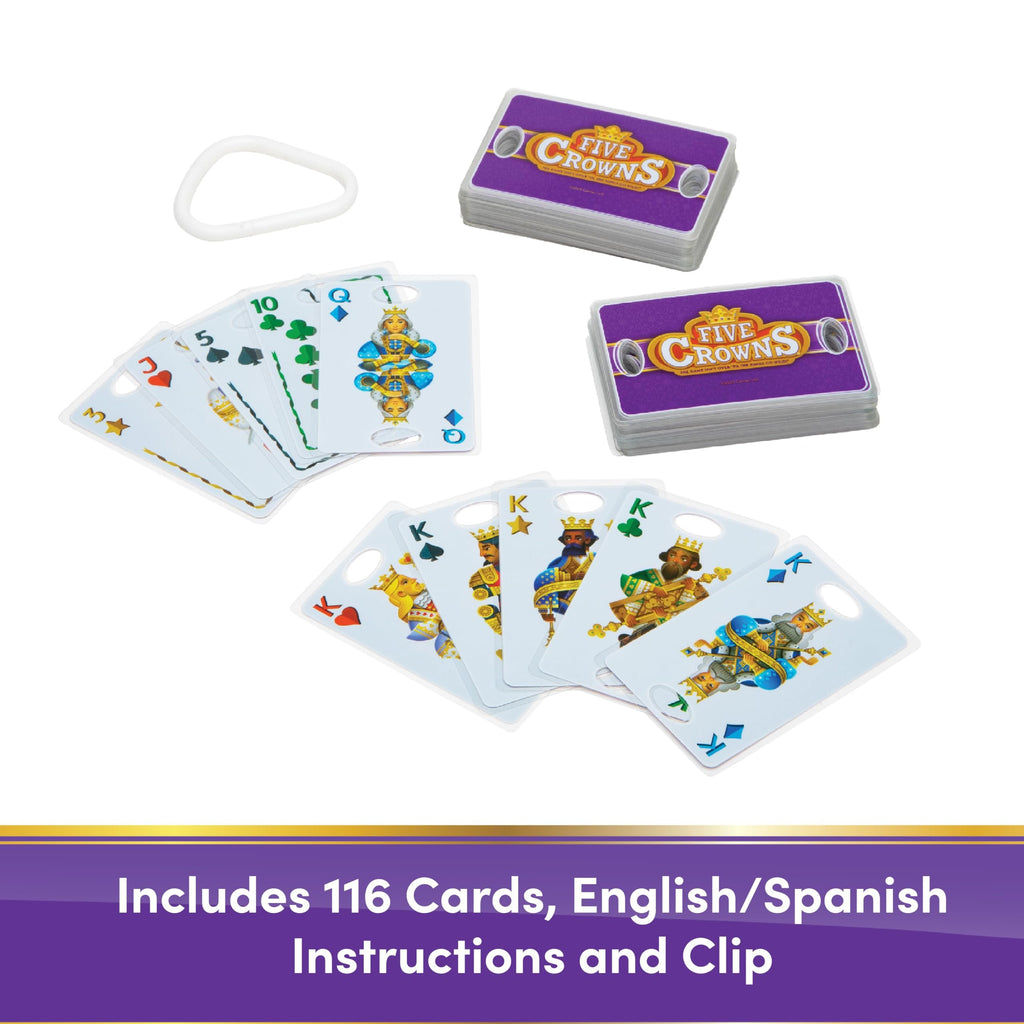Five Crowns is the perfect game that everyone from friends to the whole family will enjoy playing over and over again! This award-winning game features a one-of-a-kind deck and rotating wild cards that keep everyone on their toes! Each round provides different card hands and different ways to play various combinations to keep your score low and your opponents' scores high. Take the fun on the go with waterproof cards you can clip and carry! And the game isn’t over ‘till the Kings go wild! For 1 to 7 players, ages 8 and up