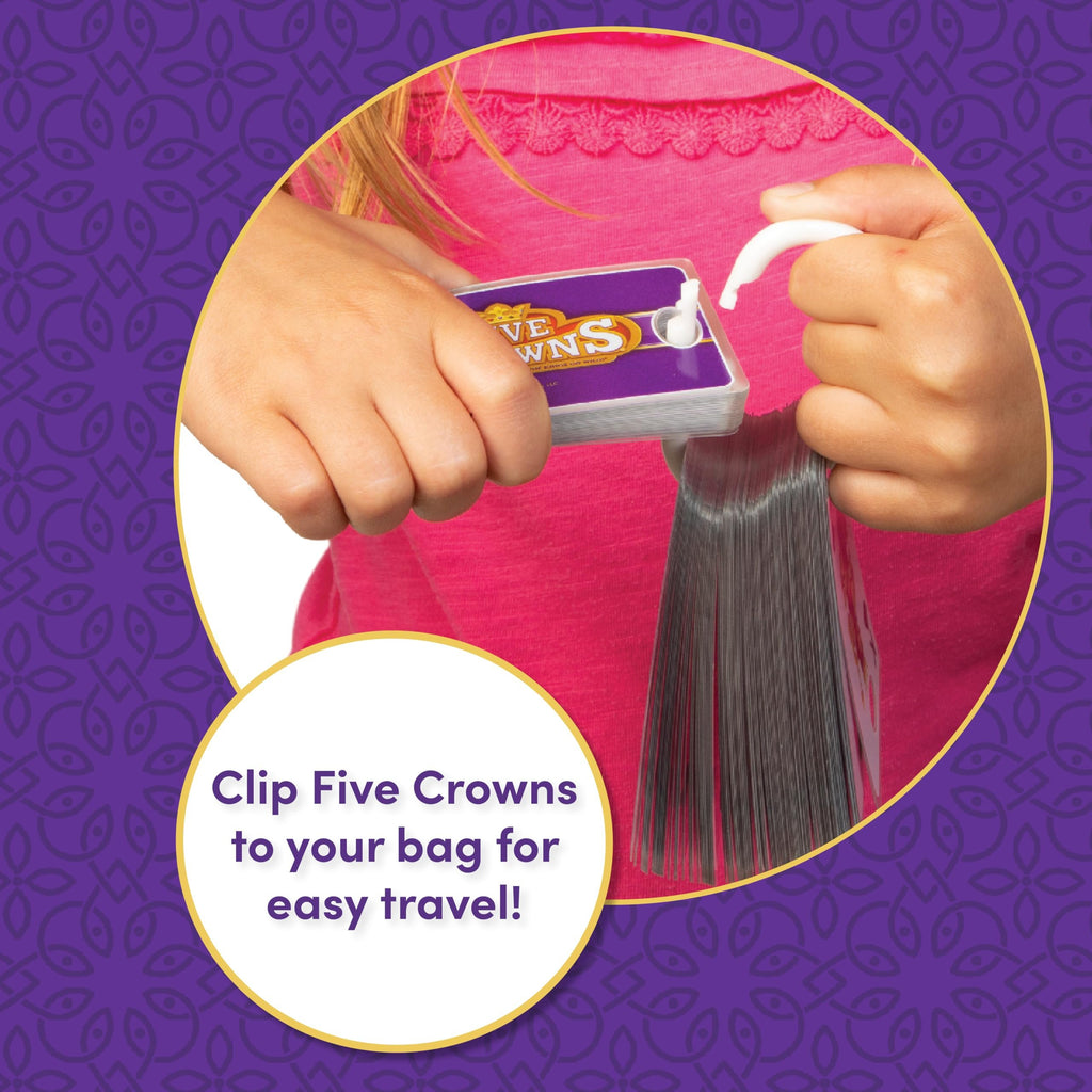 AWARD-WINNING – Best-selling game that is fun to play over and over againTRAVEL-FRIENDLY—Waterproof cards thread through the travel clip to take your game with you! Enjoy outside, on the beach, and wherever life takes youEASY TO LEARN – Gameplay is simple enough for quick learning and tons of fun for beginners and pros alikeFAMILY FUN: Looking for fun card games for adults and families? This award-winning game is one of the best card games for a day at the beach or poolRUMMY WITH A TWIST: It’s a unique twist on the classic rummy card game. A fifth suit of stars makes Five Crowns even more exciting than other family card games