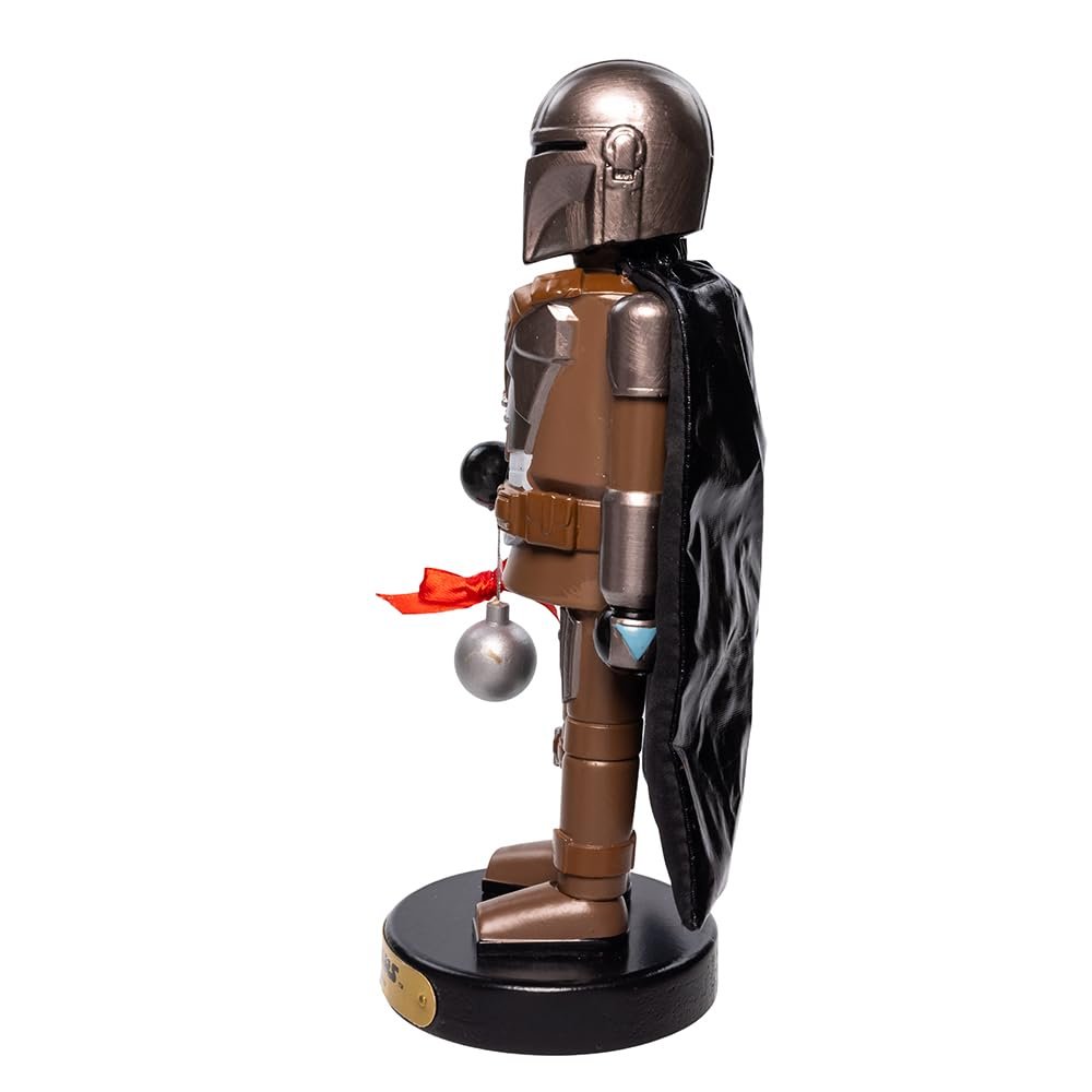 STAR WARS Kurt Adler 10-inch Mandalorian Nutcracker Cosmic Size: Standing at 10 inches tall, our Star Wars Mandalorian Nutcracker commands attention with its impressive stature, making it a standout piece in your holiday decor collection. Galactic Detail: This nutcracker intricately depicts the Mandalorian, capturing every detail of his iconic armor and helmet with lifelike precision, bringing the legendary bounty hunter to life in your home. Legendary Craftsmanship: Crafted with meticulous attention to detail, our nutcracker is made from high-quality materials, ensuring durability and authenticity while embodying the heroic spirit of the Star Wars universe. Festive Force: Celebrate the magic of the holidays with our Star Wars Mandalorian Nutcracker, a symbol of joy and adventure that adds a touch of excitement to your festive traditions and decor.