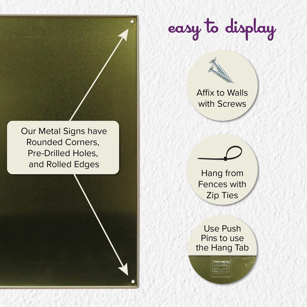 Perfect for adding a personal touch to your man cave, dorm room, bedroom, or garage, our metal signs display vibrant graphics and clever messaging for a custom vibe. These signs are made from high-quality tin metal for durability and long life and have pre-drilled holes for easy hanging. Features rounded corners for safe handling.SUPERIOR METAL DECOR: Made from high-quality tin with a premium printed graphic, our fun and stylish sign adds a uniqe presence to indoor and outdoor spaces. Measures 11.8” L x 7.9” W.CLEVER WALL DECORATION: Hang this sign in your garage, college dorm room, living room, bedroom, or anywhere else you want to set the tone. It's an excellent conversation starter and a clever way to express yourself.PERSONALIZE YOUR ROOM: Showing off bold messaging and graphics, this sign helps you turn any room into your own personal space. It makes an excellent gift for housewarming parties, new apartments, birthdays, and any other special occasion.EASY TO HANG: With pre-drilled holes and a hanging tab on the protective cover, this sign has a versatile design that can be hung just about anywhere. Features rounded corners that don't get caught up on anything.KALAN: A family-owned business that has been making people smile for over 50 years, we create items that are fun, funny, and truly unique. Each of our products is made from quality materials with careful attention to detail.