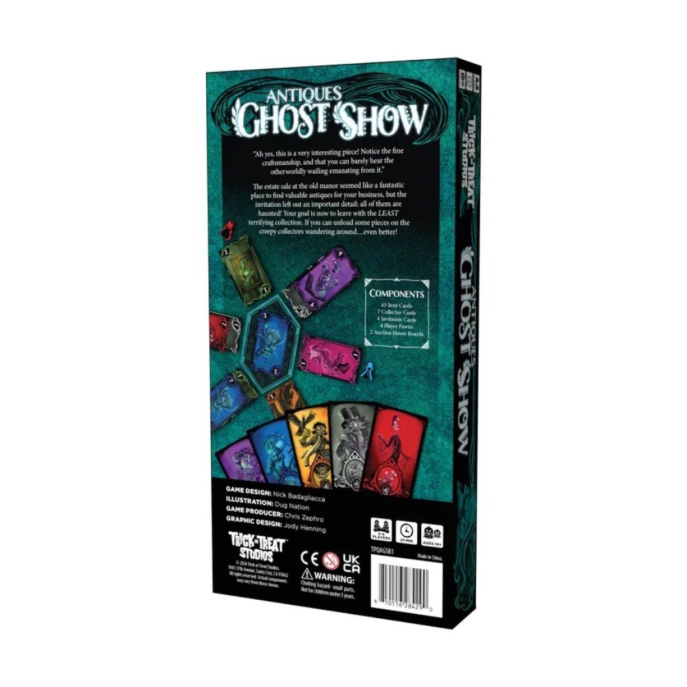 The estate sale at the old manor seemed like a fantastic place to find valuable antiques for your business, but the invitation left out an important detail: all of them are haunted! Your goal is now to leave with the LEAST terrifying collection. If you can unload some pieces on the creepy collectors wandering around...even better! Player Count: 2 to 4, Play Time: 20 Min, Age Range 14+