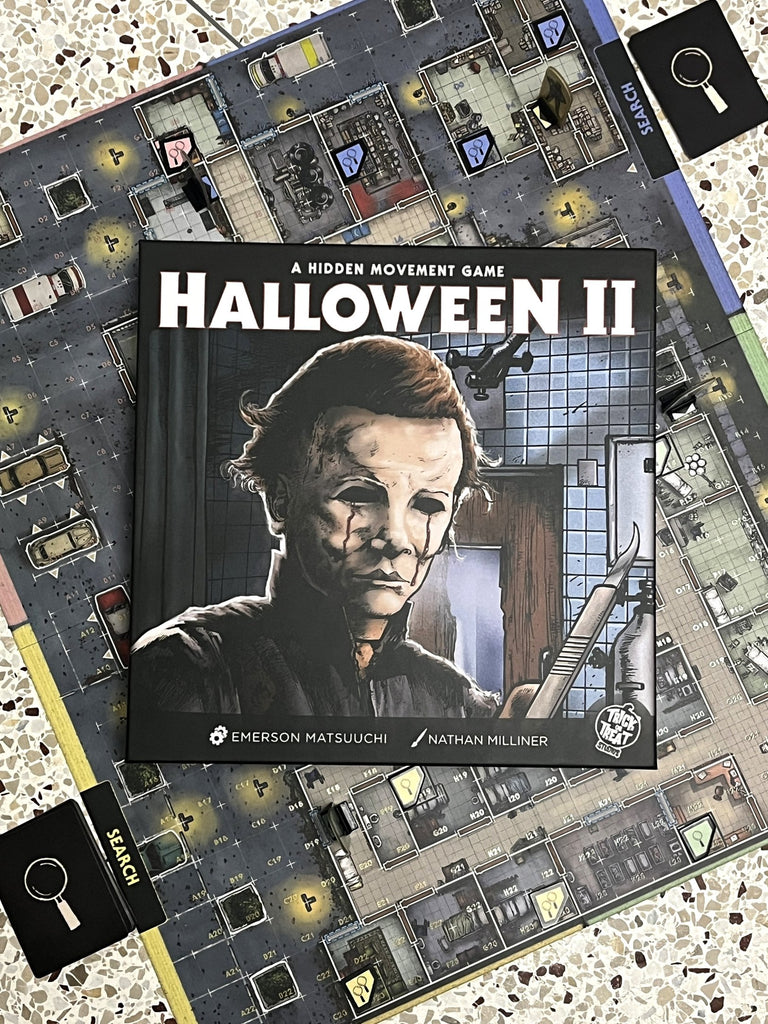 Step back into the chilling corridors of Halloween II with the Trick Or Treat Studios Halloween 2 Board Game. Designed by Emerson Matsuuchi and illustrated by Nathan Milliner, this hidden-movement strategy game captures the suspense of Michael Myers stalking survivors in the shadows.