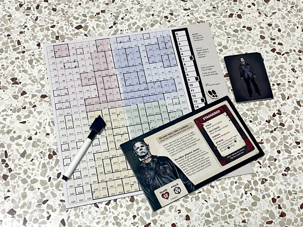Packed with immersive components—including character miniatures, custom dice, tokens, and a dry-erase movement board—the game brings the horror of Halloween II directly to your table. Perfect for horror fans, collectors, and board gamers alike, this thrilling strategy game is designed for 2 to 4 players, ages 14 and up, with 60 minutes of playtime.